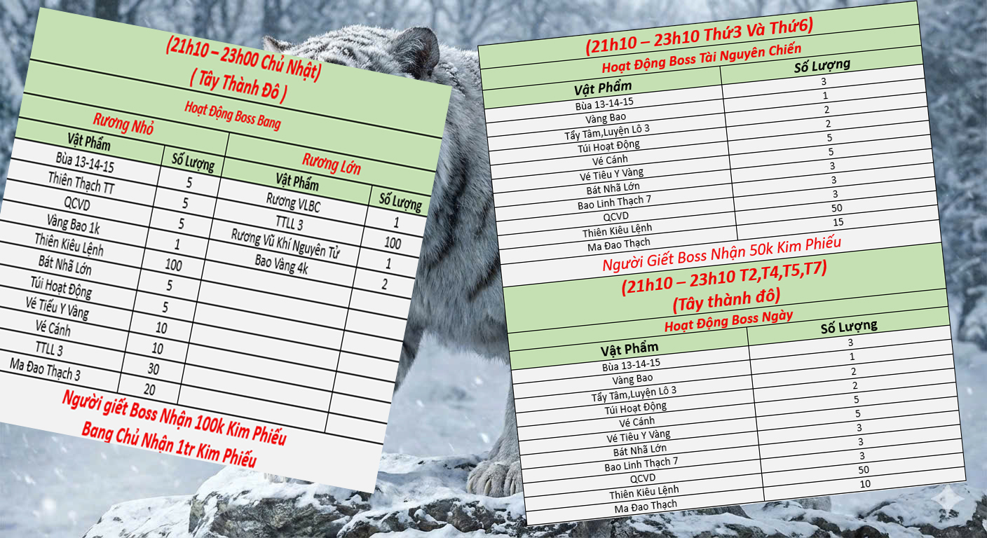 THỜI GIAN SĂN BOSS VÀ ĐỊA ĐIỂM