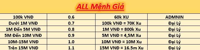 Tỷ lệ donate qua Admin : 100k = 60.000 kim phiếu game